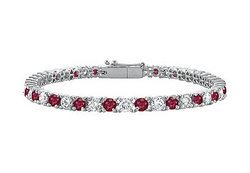 Get caught in the rapture of rubies and diamonds. Radiant round rubies alternate with brilliant-cut diamonds in a 14K white gold prong-setting. With gems consistent all around it symbolizes your eternal love. This tennis bracelet has a total gem weight (TGW) of 4.00 ct.