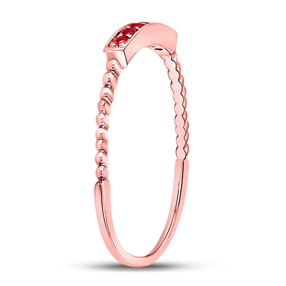 10kt Rose Gold Womens Round Ruby Beaded Stackable Band Ring 1/20 Cttw