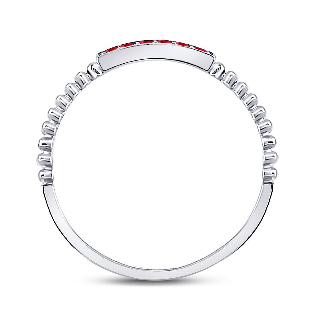 10kt White Gold Womens Round Ruby Beaded Stackable Band Ring 1/20 Cttw