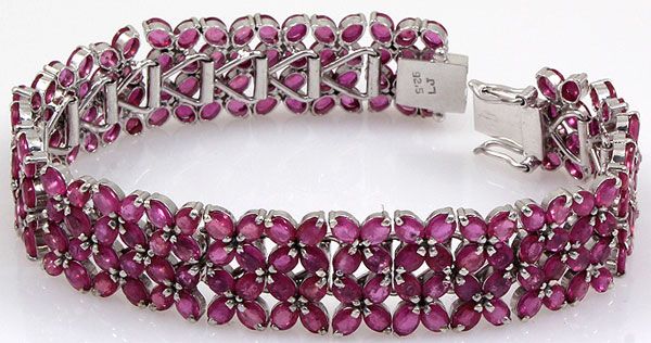 Ruby Bracelet 2 Rows Floral 92.5 Sterling Silver 35 Gra **|**|** Ruby Bracelet Floral 92.5 Sterling Silver 35 Grams ; MSRP: $600