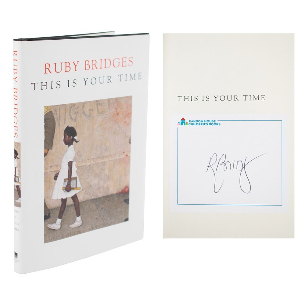 American civil rights activist (born 1954) who, at the tender age of six, was the first African-American child to integrate an elementary school in the South. Bridges enrolled at the William Frantz Elementary School in Louisiana during the New Orleans school desegregation crisis on November 14, 1960. Signed book: This Is Your Time. First edition. NY: Delacorte Press, 2020. Hardcover with dust jacket, 5.5 x 7.25, 55 pages. Signed in black ballpoint, "R. Bridges," on a bookplate affixed to the half-title page. In very fine condition.