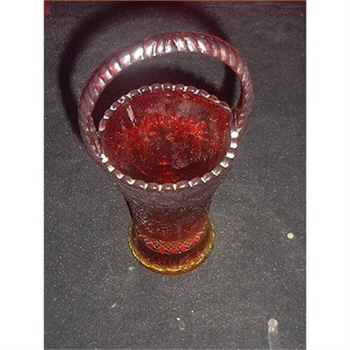 Ruby Color with an Amber color Bottom Glass Basket. In excellent condition. Very beautiful in color. Simply a gorgeous piece to own. It would accent any display or shelf. Measures 10" tall by 5.5" wide. HAPPY HOLIDAYS