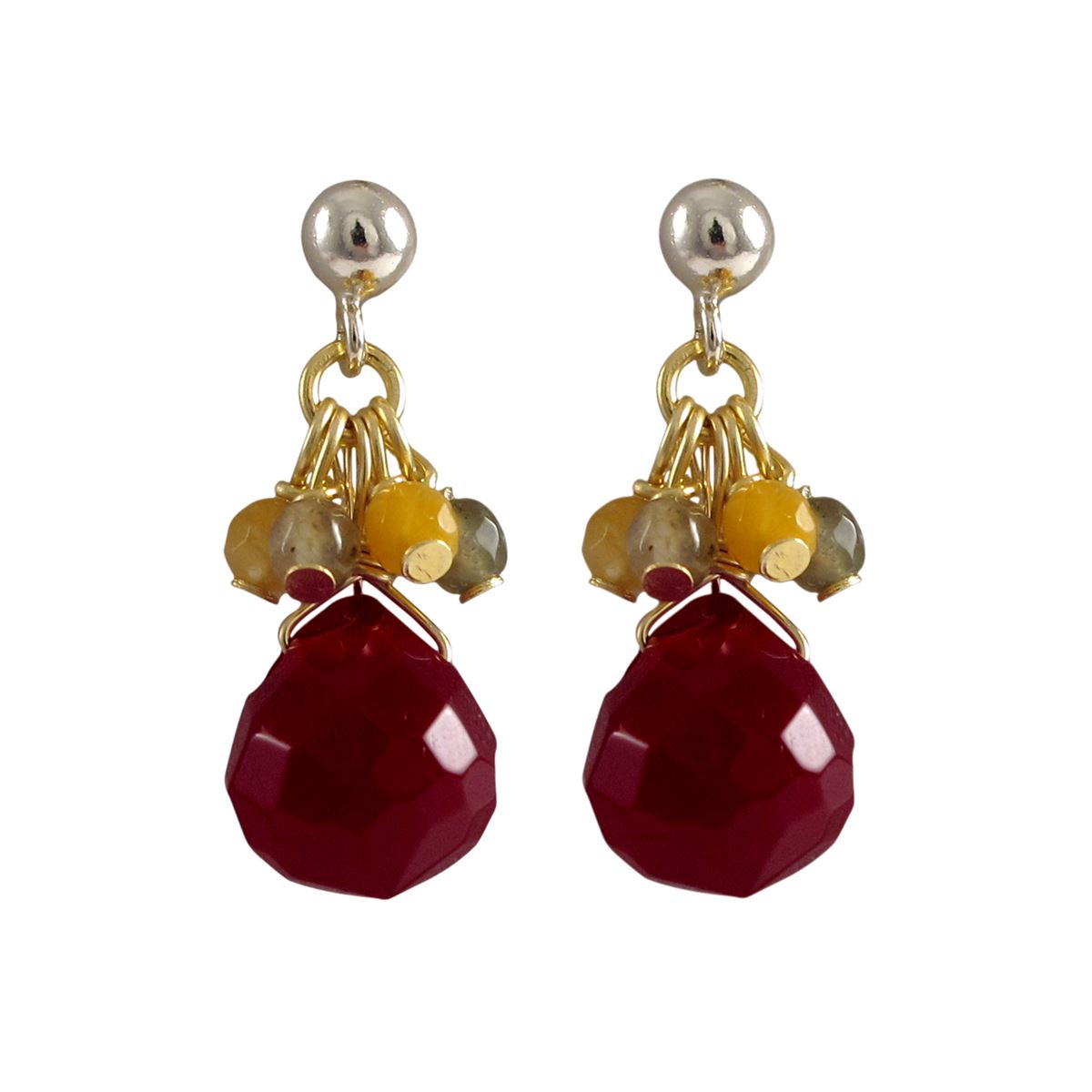 Ruby Combination Semi Precious Stones On Gold Filled Post Earrings, 1&Quot;