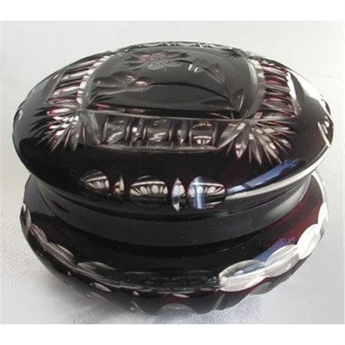 <tr><td>Title:Ruby Cut to Clear Glass Dresser Jar</td></tr>