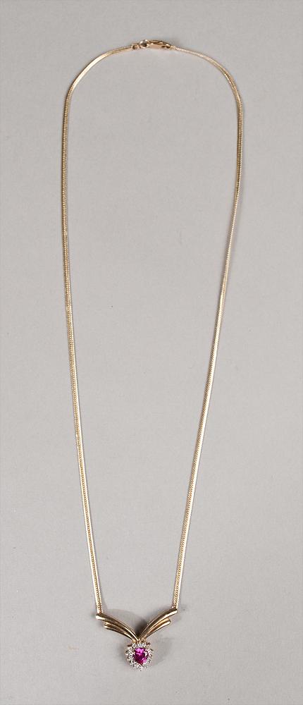 Ruby, Diamond And 10K Gold Neckless