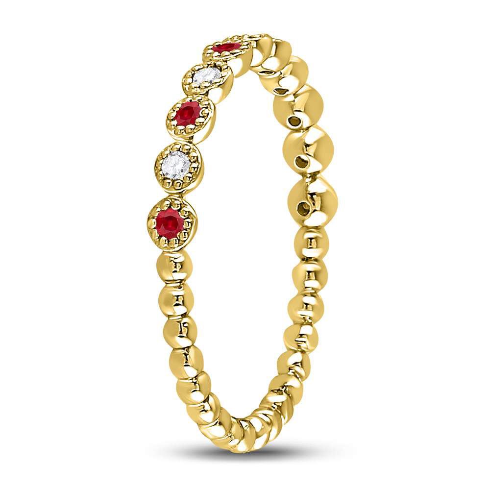 10kt Yellow Gold Womens Round Ruby Diamond Beaded Dot Stackable Band Ring 1/6 Cttw