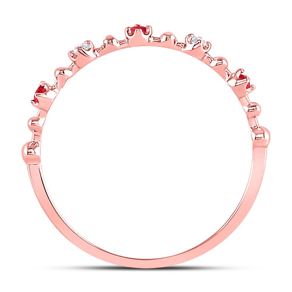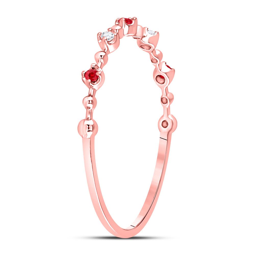 10kt Rose Gold Womens Round Ruby Diamond Beaded Stackable Band Ring 1/20 Cttw