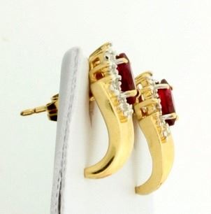 In 14K yellow & white gold, each earring contains a .30ct marquise ruby gemstone and two 1/2pt diamonds. They have friction backs and are 5/8 inch long. 2.9g