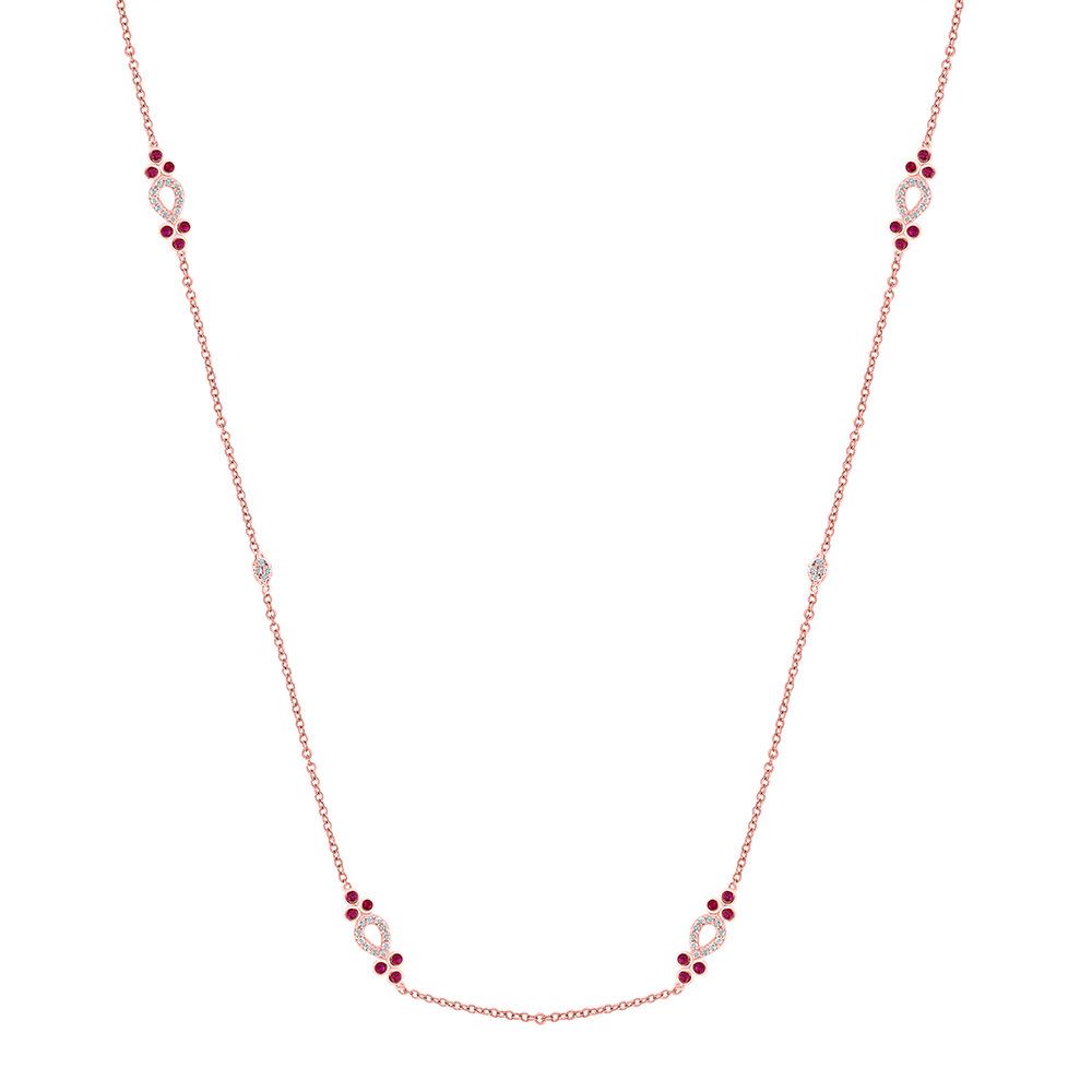 14kt Rose Gold Womens Round Ruby Diamond Fashion Necklace 1/2 Cttw