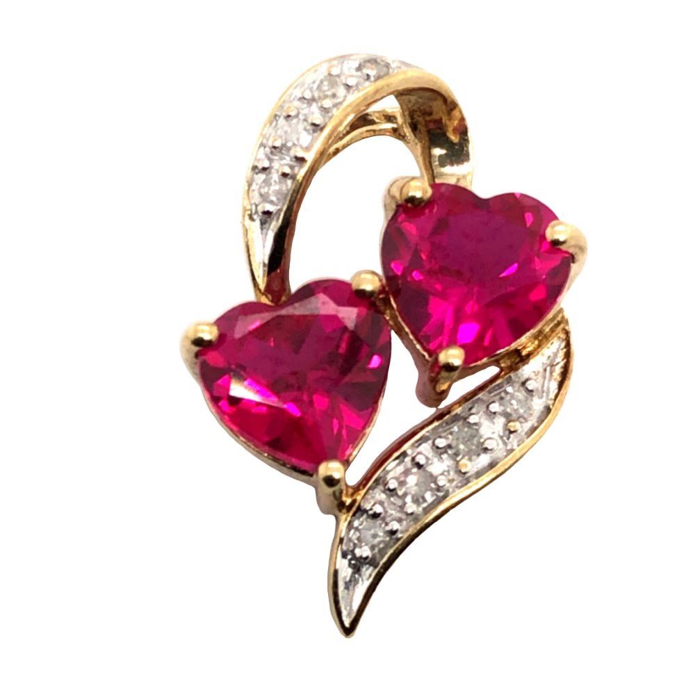 DESCRIPTION DETAIL: 10k Yellow Gold Lab Ruby & amp; Diamond Heart Slide Pendant