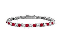 This never ending chain of alternating Rubies and princess-cut diamonds symbolizes your timeless love. Crafted in rich platinum & held in a prong setting this tennis bracelet has a total gem weight (TGW) of 5.00 carats. A great way to honor your union.