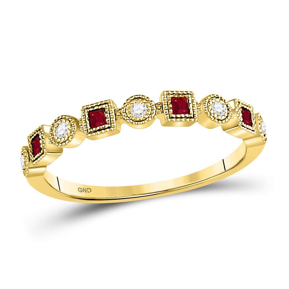 REF-14X5Y - SKU: GD127814 ---- Ruby Diamond Square Dot Milgrain Stackable Band Ring 1/8 Cttw 10kt Yellow Gold