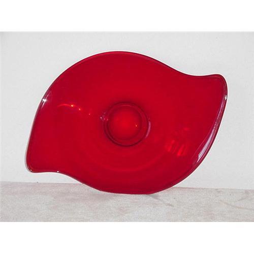 A beautiful ruby glass dish, 17" long, 12" wide, modern design. A great centerpiece for a table, rim on base is beautifully polished and the plate is in very good condition, there is one slight scratch near the center of the dish.