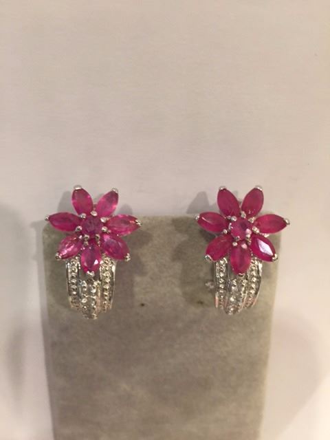 3.11ct, ruby, fuchsia red, very good quality, accented with colorless topaz with excellent quality.