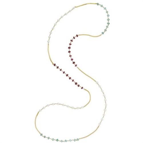 Ruby, Emerald, Cultured Pearl, Gold Necklace