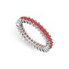 Emitting a vibrant red radiance this vivacious eternity band is prong-set with princess-cut rubies. Made in 14K white gold this eternity band has a total gem weight (TGW) of 2.00 ct. A perfect gift for any July born as Ruby is Julys birthstone.