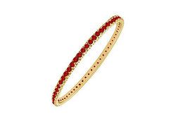 A fashionable circle eternity bangle surrounded with sparkling brilliant-cut round rubies are beautifully 4-prong-set. Made in 14K yellow gold & has a total gem weight (TGW) of 2.00 carat. This gorgeous eternity bangle is made in USA and we can make this bangle exactly as per your wrist. Call us for free bangle sizer.