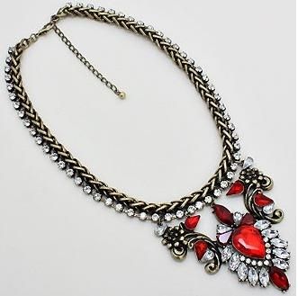 This necklace with matching earrings features an elegant design with gold burnished chain and flowers.Color : gold burnished / siam / clear Necklace Size : 19" + 3" L Charm Size : 3 1/2" L Earring Size : 1 1/4" LCondition: Excellent