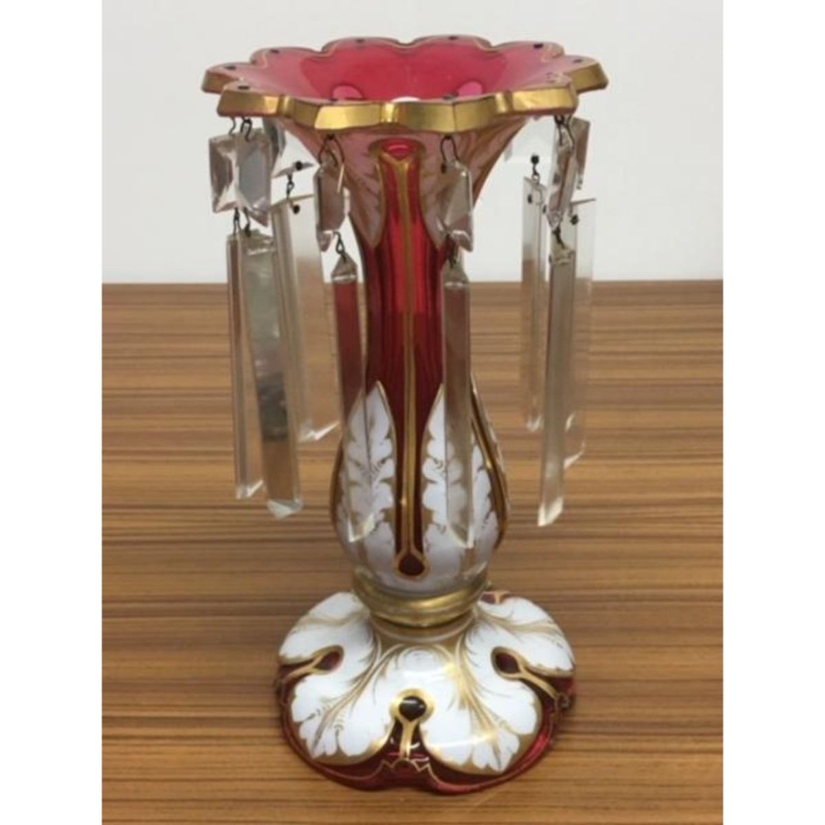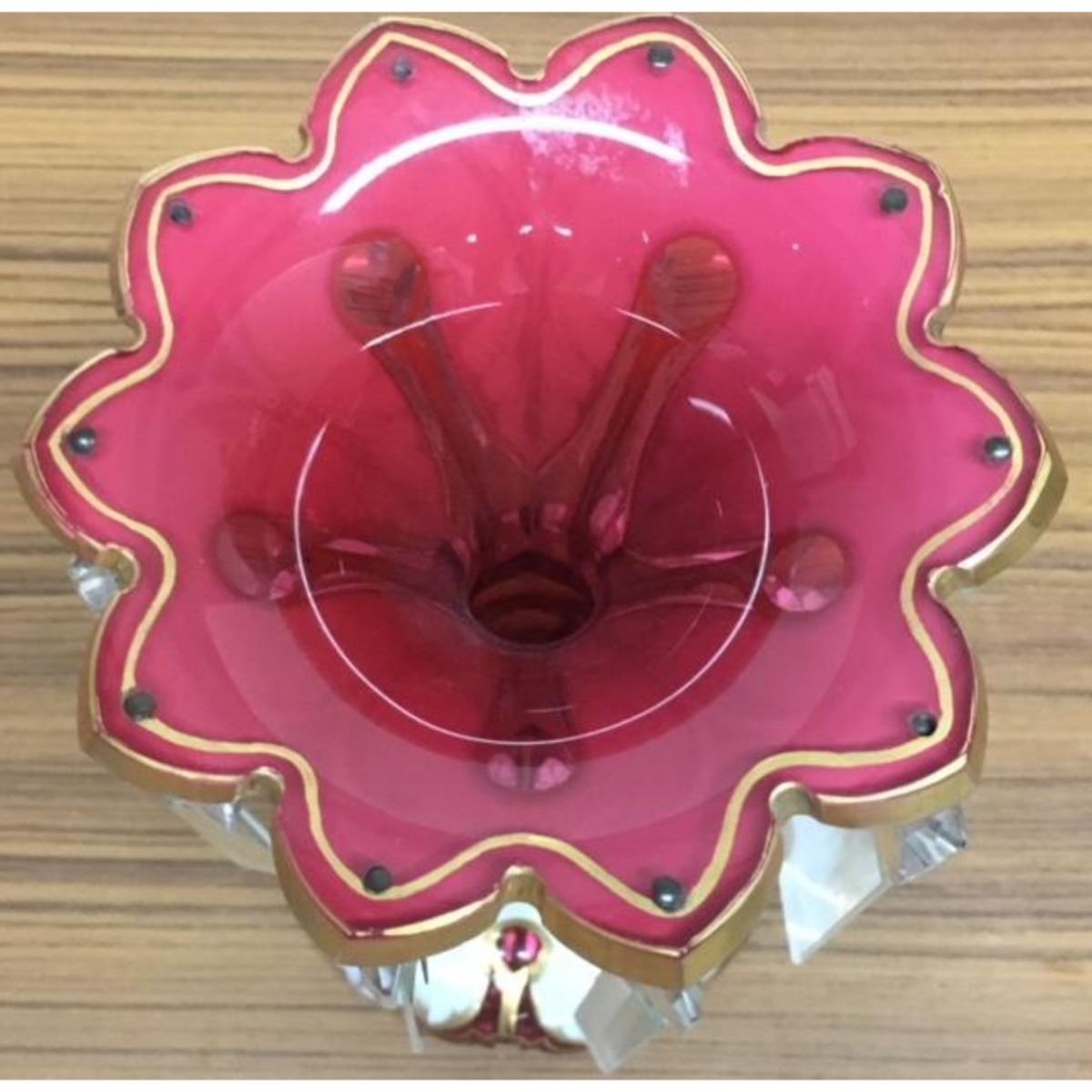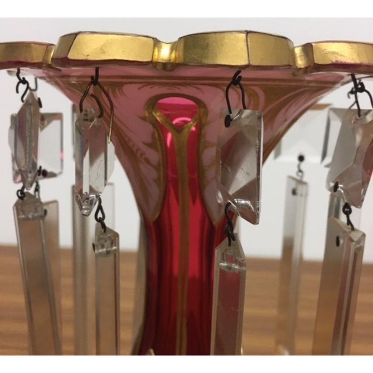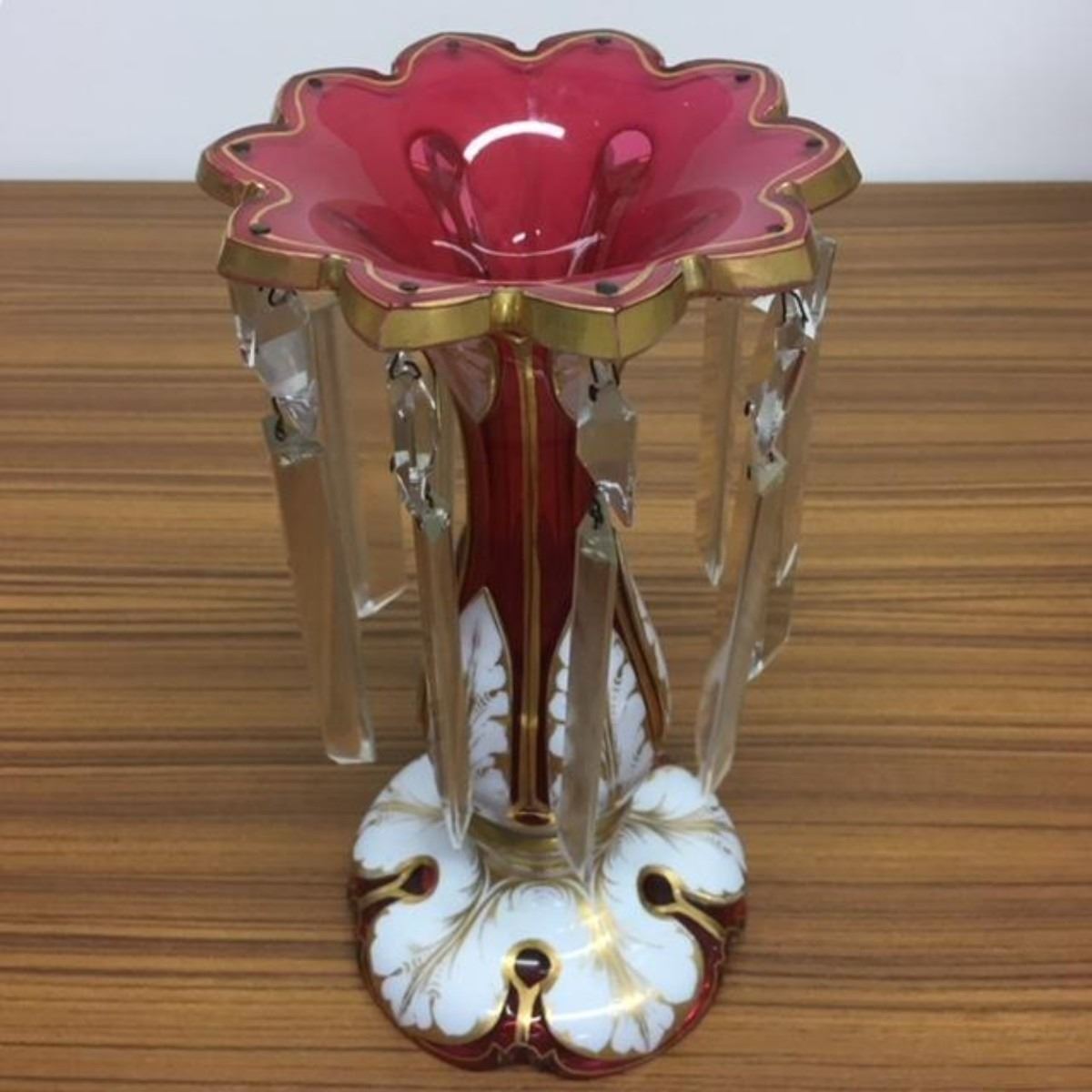 Ruby Glass Lustre With Crystal Icicle Prisms, Good Condition, minor age ware. 5x5x10" (WxDxL) Â