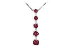 Graduating radiant rubies symbolize a progression in your love happiness or success. These five round rubies are prong-set in 14K white gold. This journey pendant has a total gem weight (TGW) of 1.00 ct.
