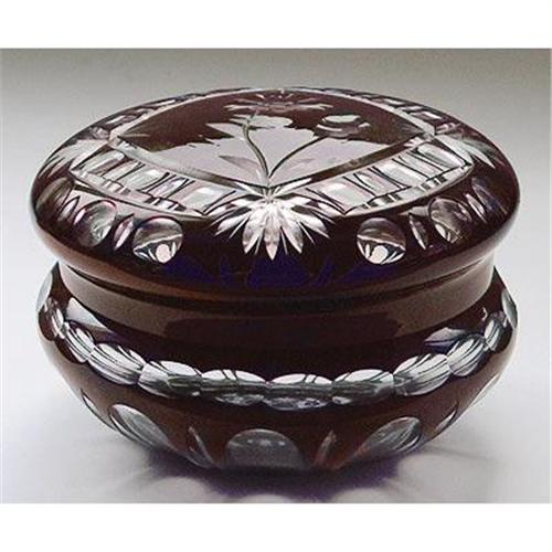 <tr><td>Title:Ruby Red Cut to Clear Glass Dresser Jar</td></tr>