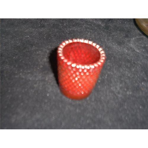 Ruby Red Hobnail Candle Holder. Nice piece and very colorful. looks great with candle burning in it. It is 2 3/4" H X 2 1/4" W. Pretty ruby red with hobnail design all around it. Hope you like it.
