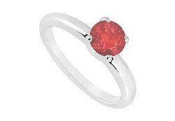 A vibrant round ruby is prong-set in the center. This sleek gemstone solitaire ring is made in 14K white gold and has a total gem weight (TGW) of 1.00 ct.