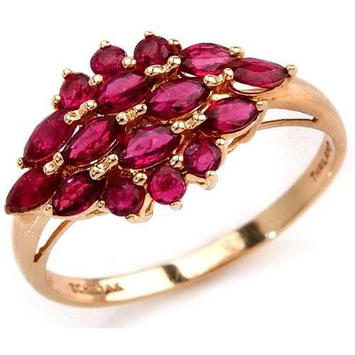 Size 7---Fifteen marquise and round cut, 1.50ctw. natural rubies are prong set in this 10kt. yellow gold ring.
