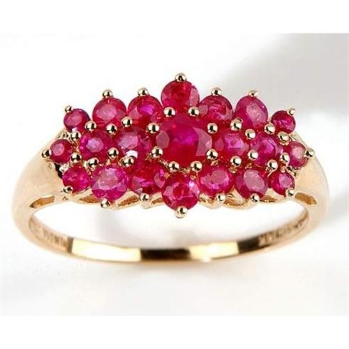 Size 11---Twenty-one beautiful, round 2.25ctw. rubies are prong set in this 14kt. yellow gold ring.