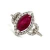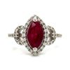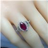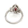 TITLE DESCRIPTION: Ruby Ring with Diamond Halo and D-Ring Shoulders