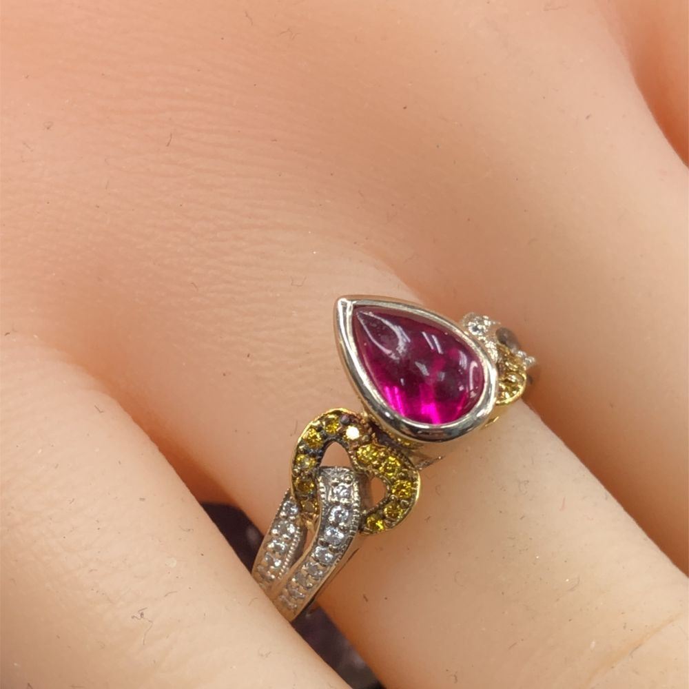 TITLE DESCRIPTION: Ruby Ring with Yellow and White Diamonds