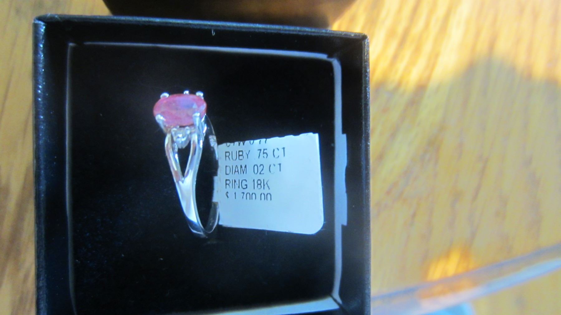 18kt White Gold Ruby and Diamond Retail $1700.00
