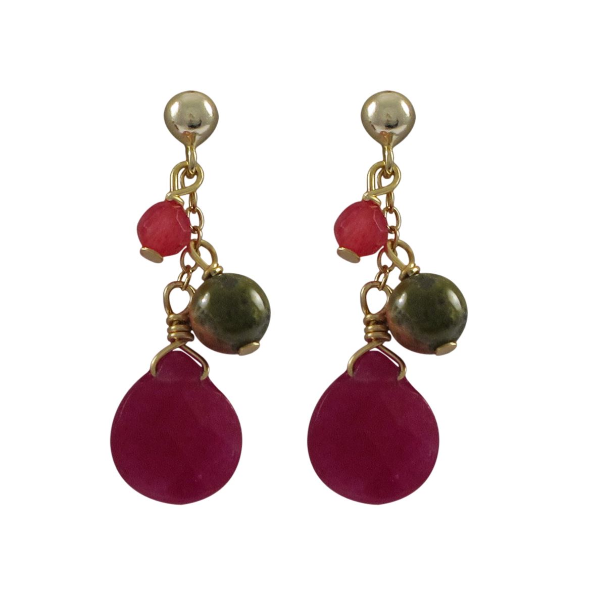 Ruby Semi Precious Stones On Gold Plated Sterling Silver Post Earrings, 1.22"