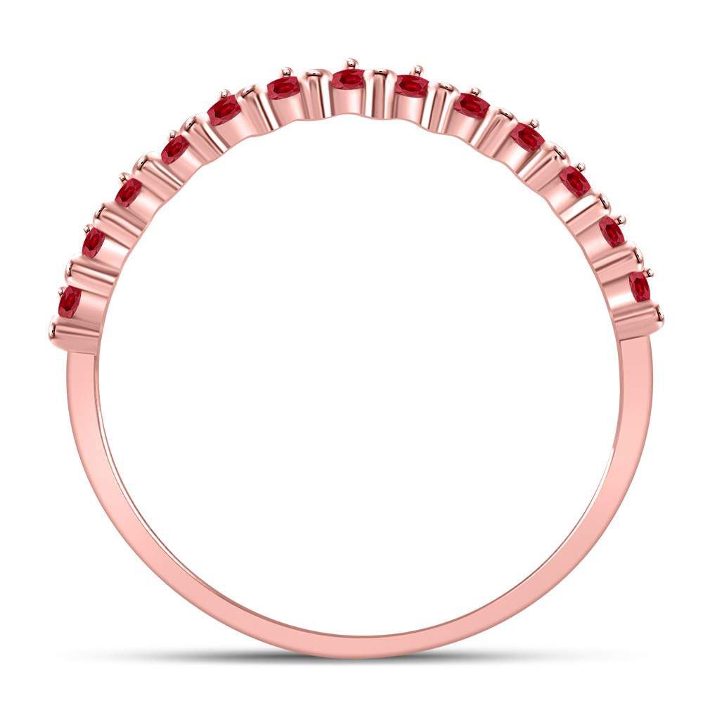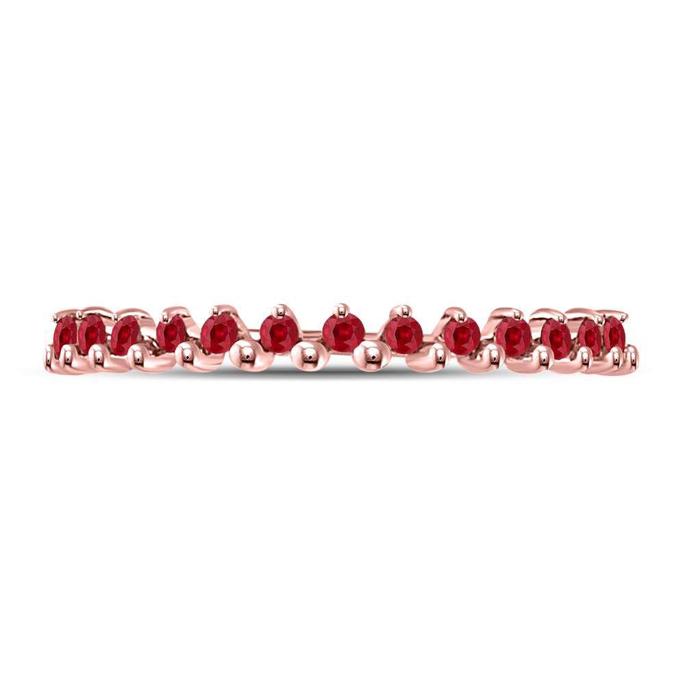 10kt Rose Gold Womens Round Ruby Single Row Stackable Ring 1/8 Cttw