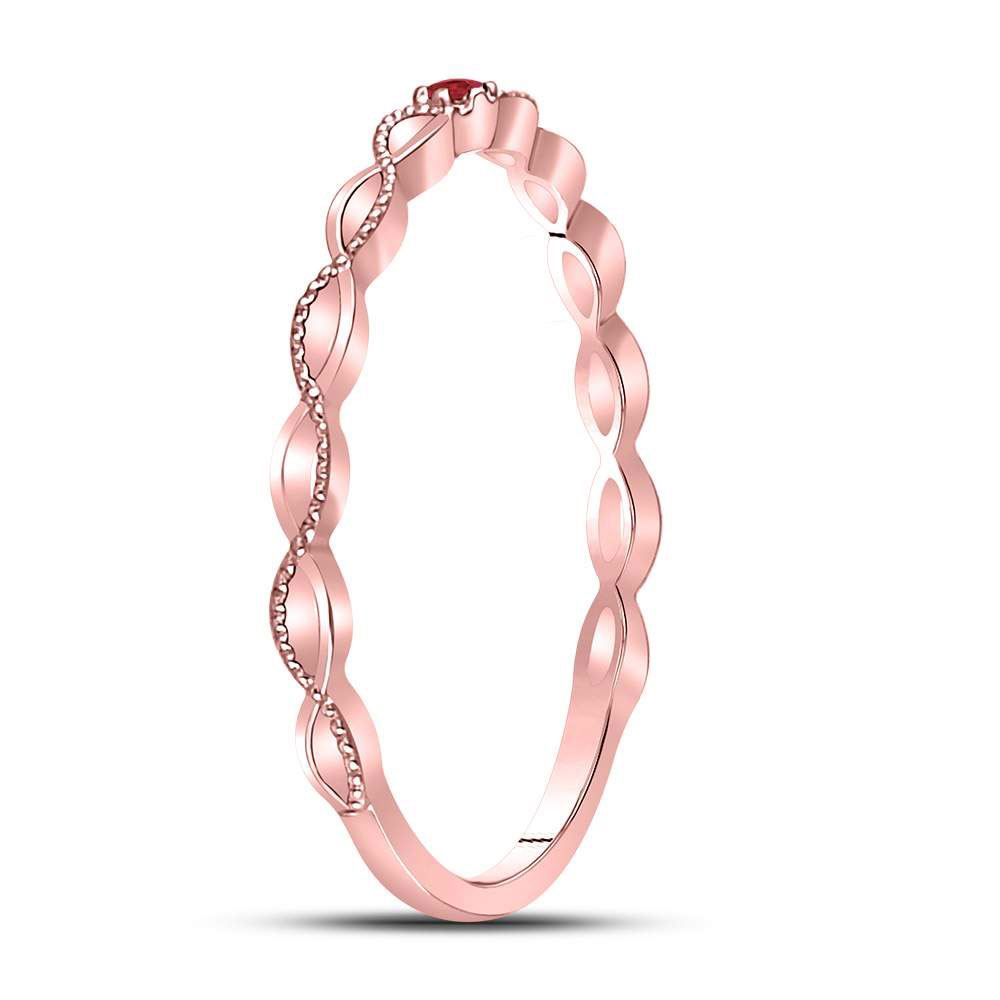 10kt Rose Gold Womens Round Ruby Solitaire Beaded Stackable Band Ring .01 Cttw