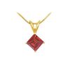 A square natural ruby is securely held in a luscious 14K yellow gold prong setting. This gemstone pendant has a total weight (TGW) of 1.00ct and comes with a standard 16 14K yellow gold chain.