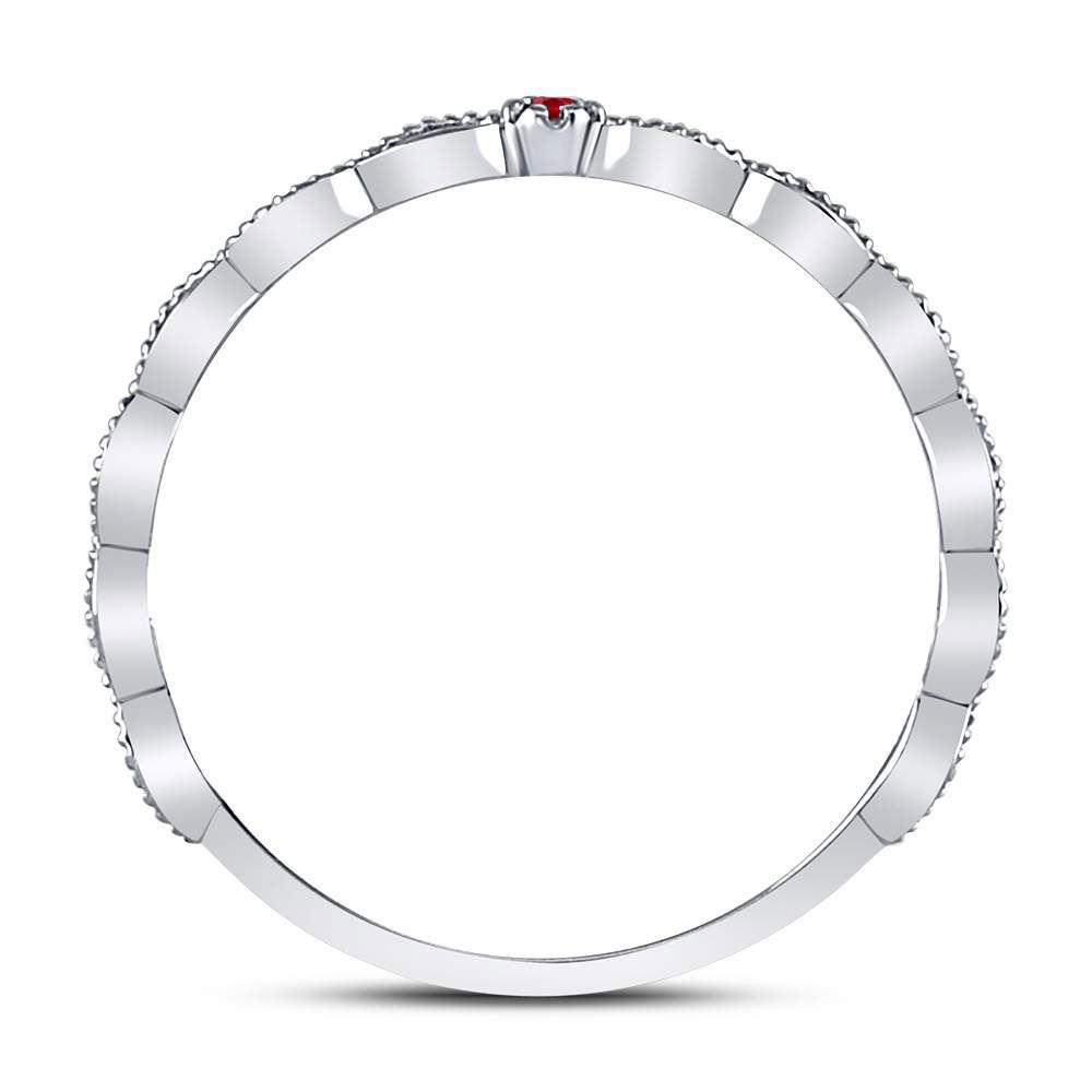 10kt White Gold Womens Round Ruby Solitaire Stackable Band Ring .01 Cttw