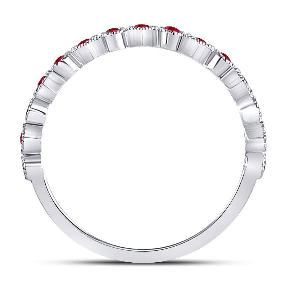 10kt White Gold Womens Round Ruby Square Dot Stackable Band Ring 1/5 Cttw
