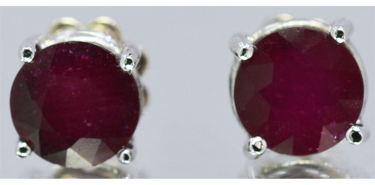 14kt White Gold 7mm Round Ruby Stud Post Back