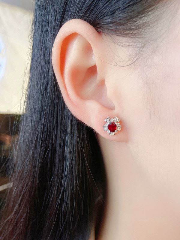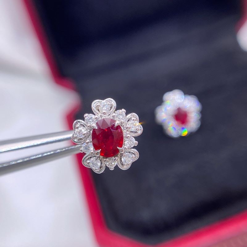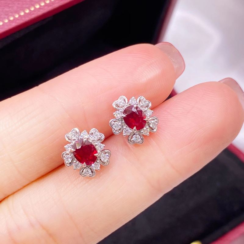 Deep red rubies take center stage, encircled by heart and round-cut white diamonds in a delicate floral design. Elegant and refined, they radiate timeless beauty and sophistication. Main diamond: 0.816ct, side diamonds: 0.239 ct. Note: Comes with an AGL certificate and a domestic jewelry identification certificate. Note: Comes with an AGL certificate and a domestic jewelry identification certificate.