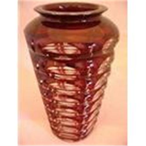 A fine antique Ruby Crystal Vase cut to clear with many cut clear oblong patterns all over vase. There are no chips or cracks.