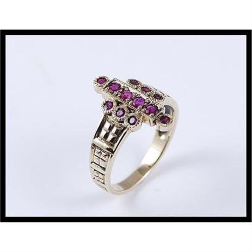 <tr><td>Title:Ruby Victorian Style Yellow Gold Ring</td></tr>