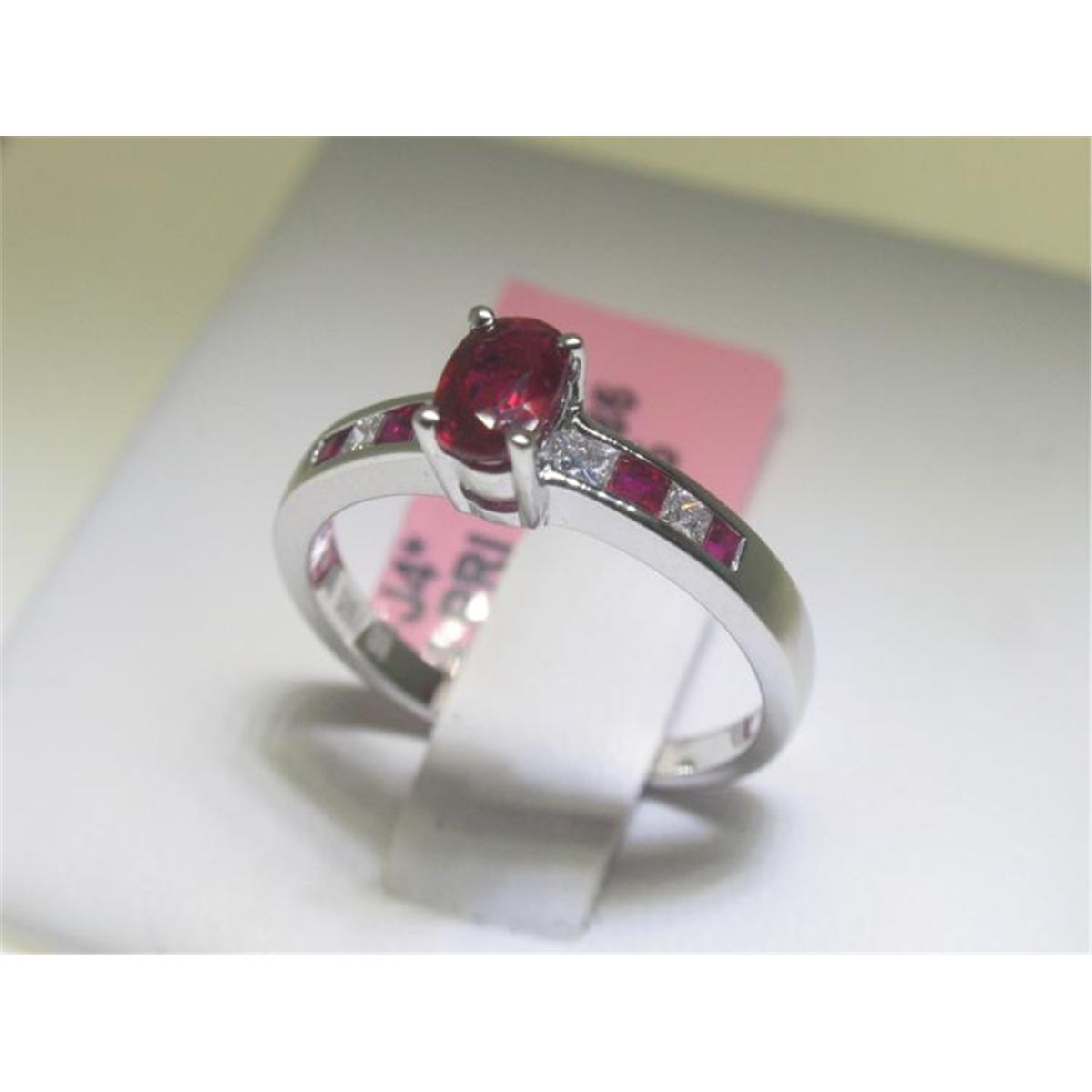 Ruby and Diamonds 14K White Gold RingTotal Weight of 4 Princess-cut Diamonds - 0.19 CT Total Weight of 5 Ruby - 0.86 CT * 14K White Gold - 2.65 grams * Ring Size: 7Appraised Value: $ 5,340.00 * *