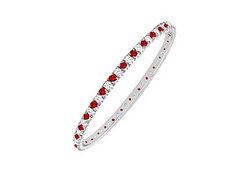A fashionable circle eternity bangle surrounded with alternate sparkling brilliant-cut round diamonds & rubies are beautifully 4-prong-set. Made in 14K white gold & has a total gem weight (TGW) of 2.00 carat. This gorgeous eternity bangle is made in USA and we can make this bangle exactly as per your wrist. Call us for free bangle sizer.
