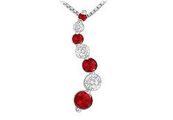This delicate curve nicely holds graduating four rich red rubies & three sparkling white diamonds in an alternative pattern. This pretty & stylish journey pendant is made in 14K white gold and has a total weight (TGW) of 1.00 ct.