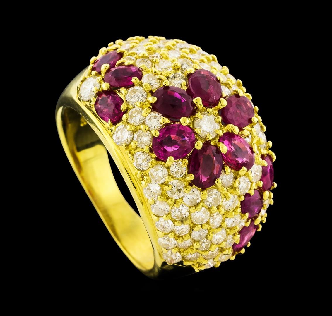 One ring featuring: 18KT Yellow Gold containing Ruby and Diamonds. Total Weight of Ring: 10.4 grams.