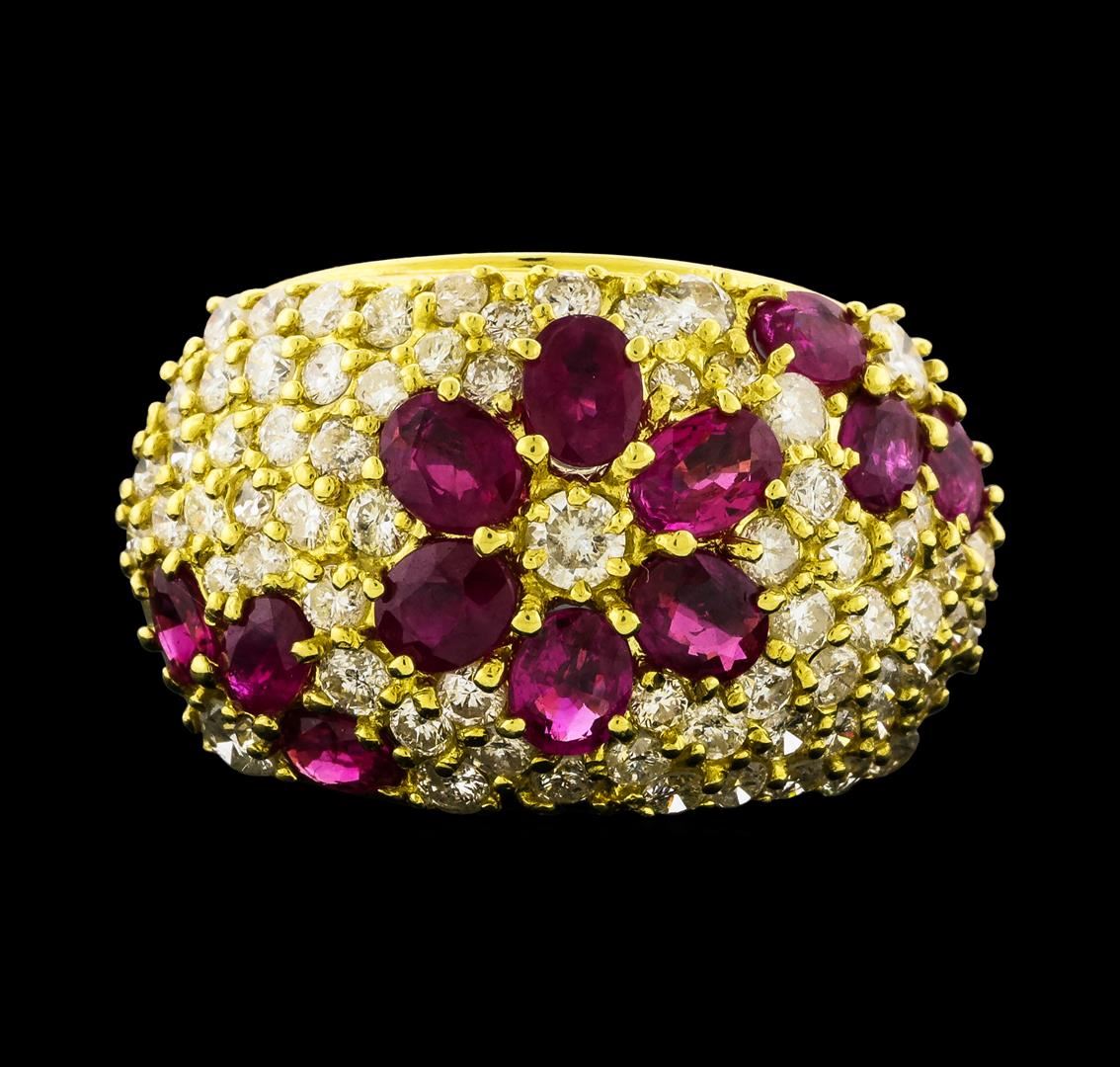 One ring featuring: 18KT Yellow Gold containing Ruby and Diamonds. Total Weight of Ring: 10.4 grams.
