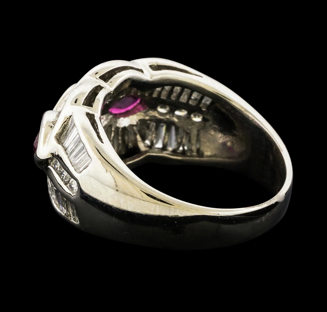 One ring featuring: Platinum containing Ruby and Diamonds. Total Weight of Ring: 11 grams.