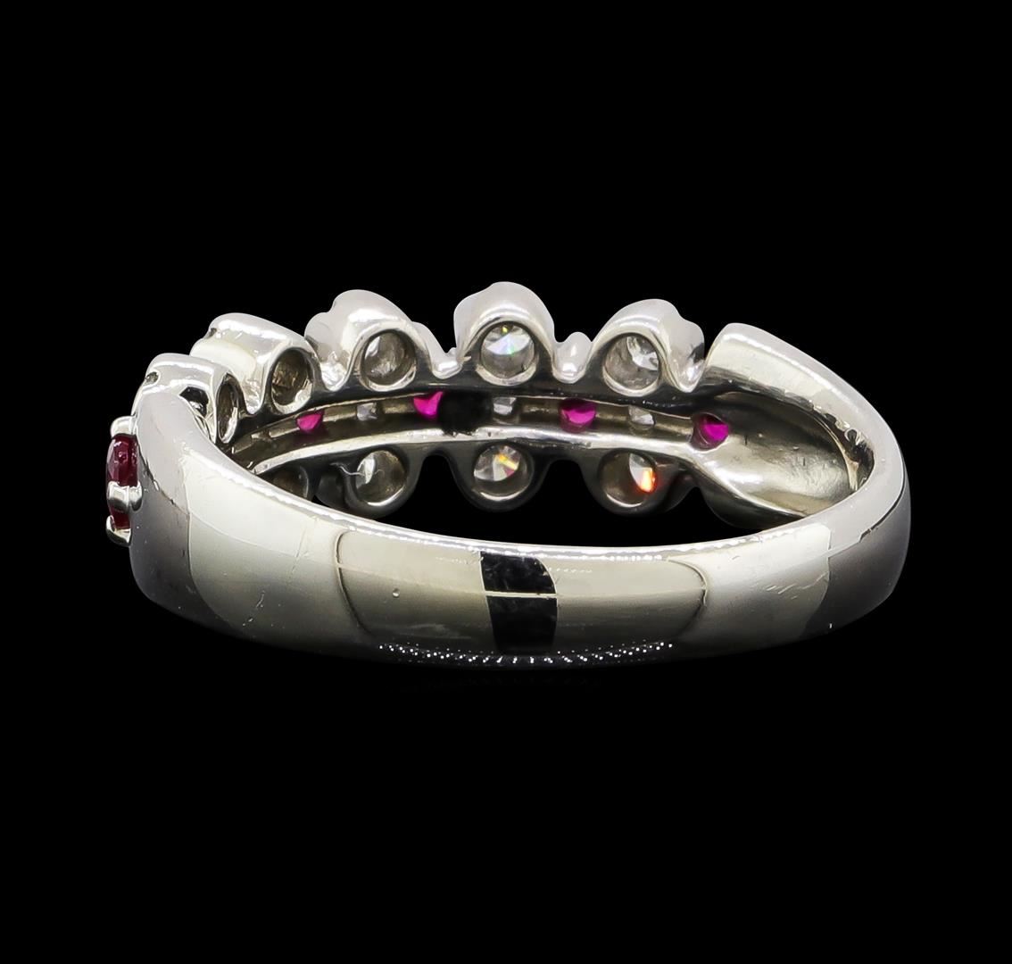 One ring featuring: Platinum containing Ruby and Diamonds. Total Weight of Ring: 6.2 grams.