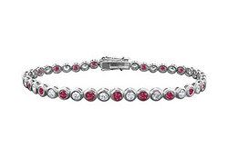 Get caught in the rapture of rubies and diamonds. Radiant round rubies alternate with brilliant-cut diamonds in a 18K white gold bezel-setting. With gems consistent all around it symbolizes your eternal love. This tennis bracelet has a total gem weight (TGW) of 4.00 ct.